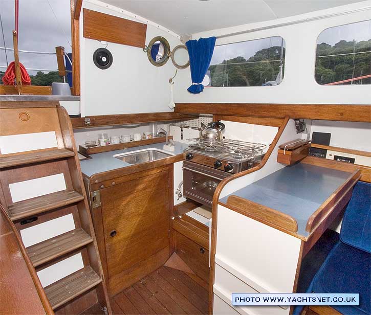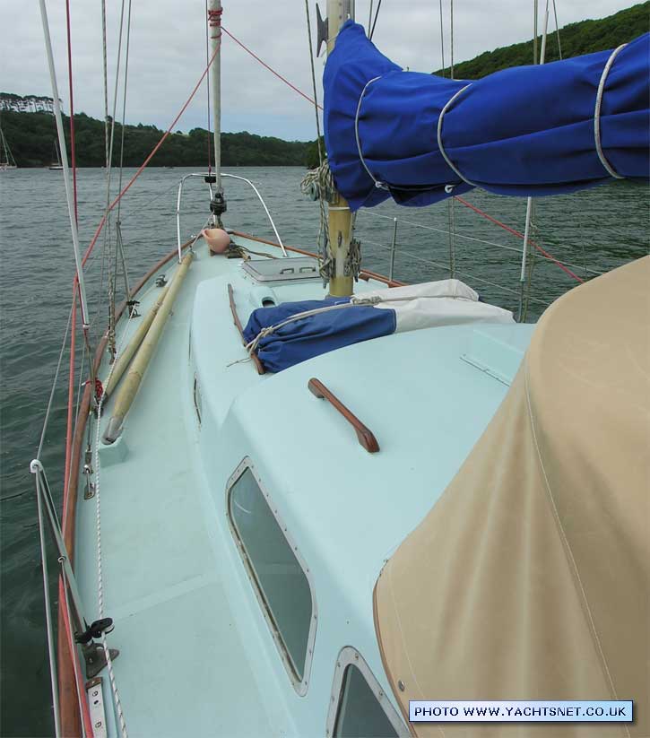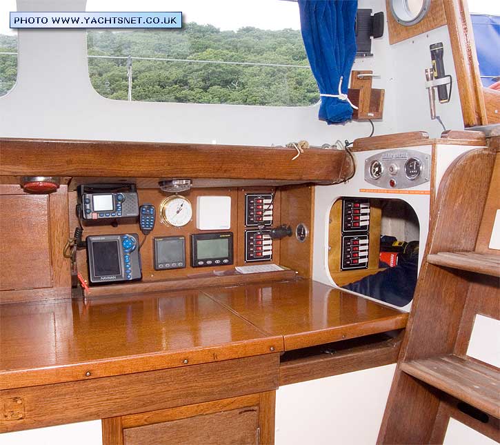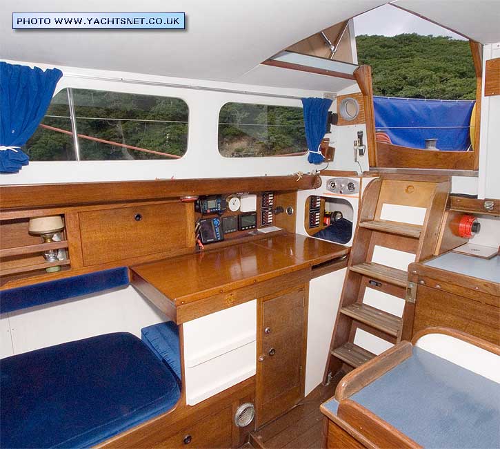 The following information and photographs are displayed as a service to anyone researching yacht types. HOWEVER THE PHOTOGRAPHS AND TEXT ARE COVERED BY COPYRIGHT, AND MAY NOT BE REPRODUCED WITHOUT THE PERMISSION OF YACHTSNET LTD. Details and photographs are normally based on one specific yacht, but could be a compilation. No reliance should be placed on other yachts of the same class being identical. Where common variations exist, we have endeavoured to indicate this in these archive details. |