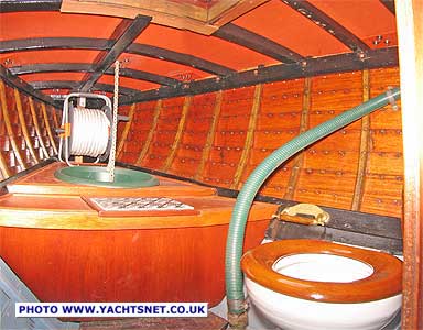 toilet in the forepeak, she has a cosy and traditional cabin. |